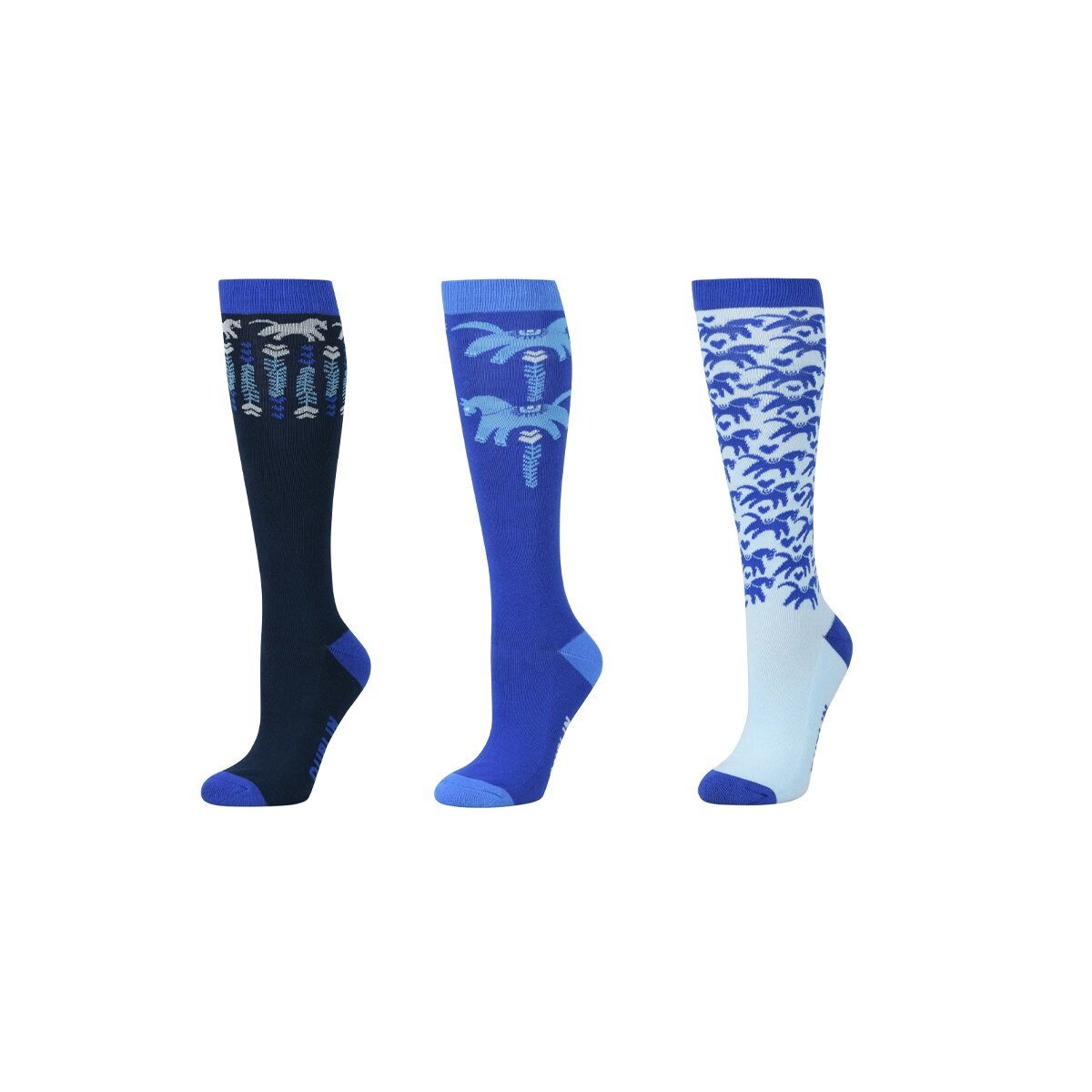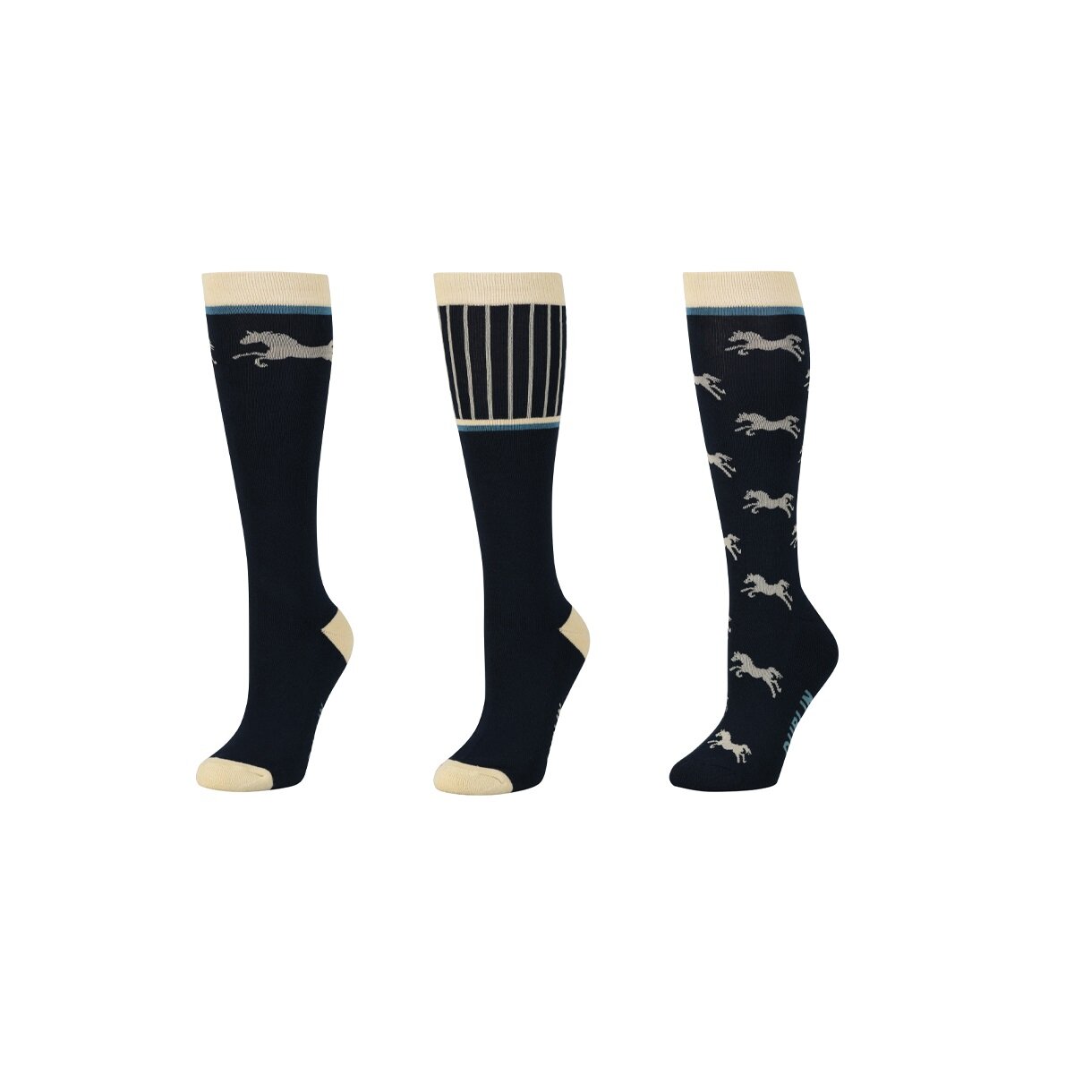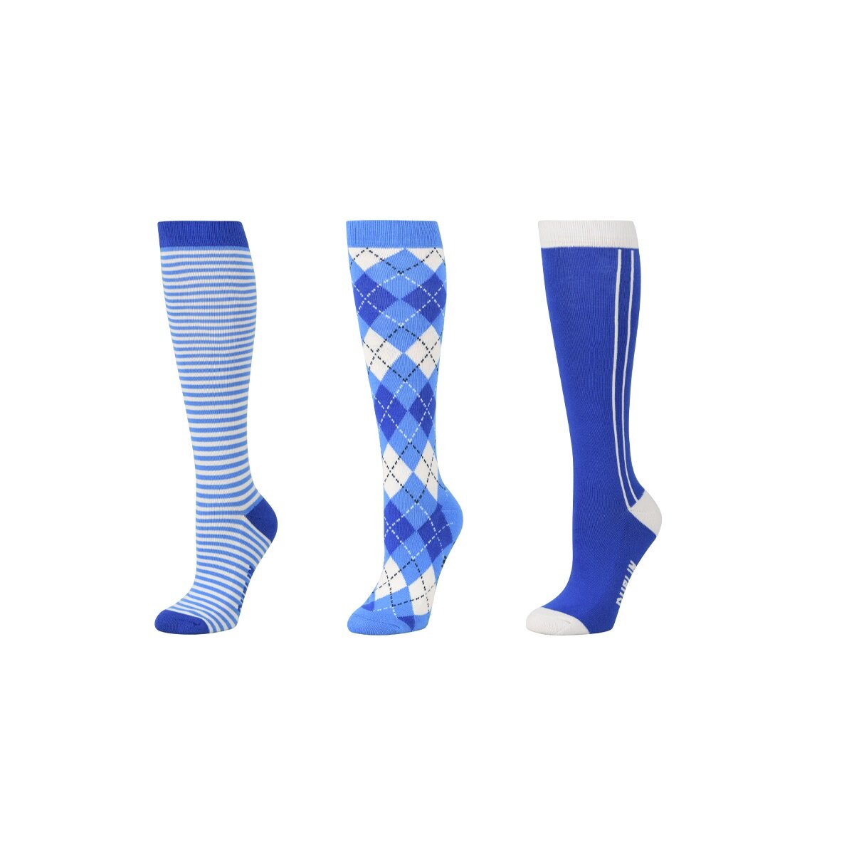 Add some fun and colour to your riding outfit with the Dublin 3 Pack Socks, these packs of high socks add colour and comfort to any outfit, made from a naturally breathable stretch cotton, your feet are sure to stay comfortable all day long. These socks come in packs of 3 pairs of socks in a range of colours and assorted designs.