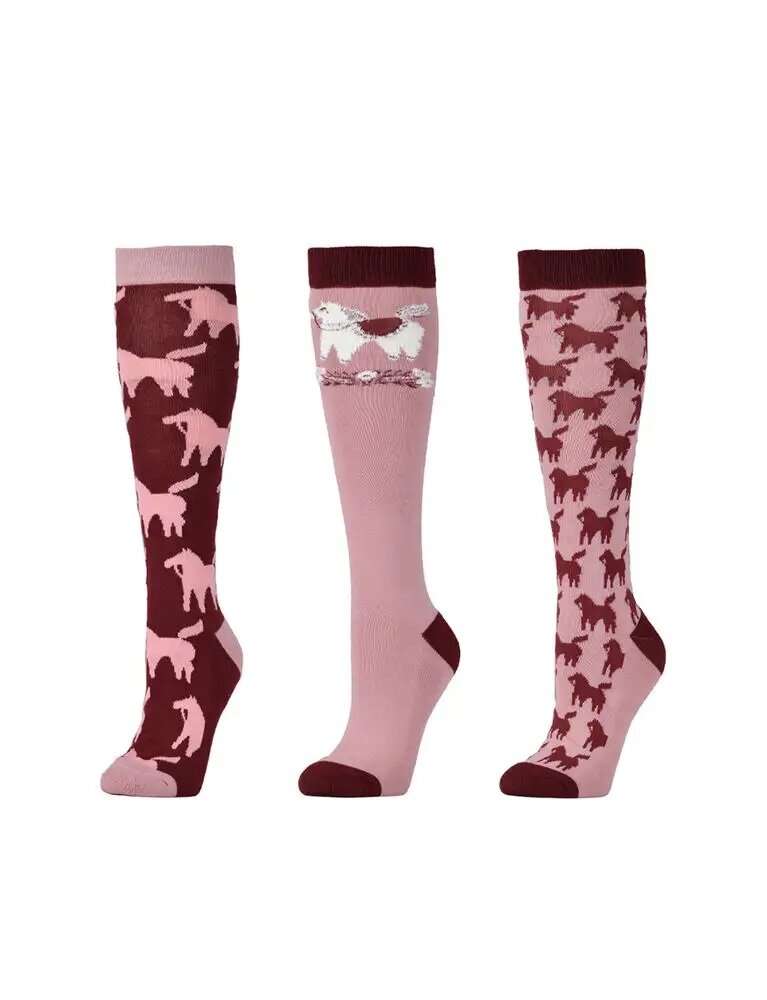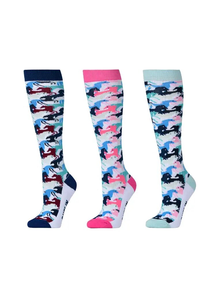 Add some fun and colour to every child's riding outfit with the Dublin Kids 3 Pack Socks, these packs of high length socks add colour and comfort to any outfit, made from a naturally breathable stretch cotton, your child's feet are sure to stay comfortable all day long. These socks come in packs of 3 pairs of socks in a range of colours and assorted designs.