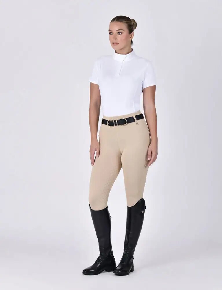 Meet the Dublin Form Competition Riding Tight. Designed for peak performance and all-day comfort, these tights are made with quick-dry, moisture-wicking fabric to keep you dry and comfortable. The wide, supportive waistband ensures a secure, flattering fit, while the full seat silicone grip offers stability and control in the saddle. Crafted from four-way stretch fabric, these tights provide ultimate flexibility to support you in competitions.