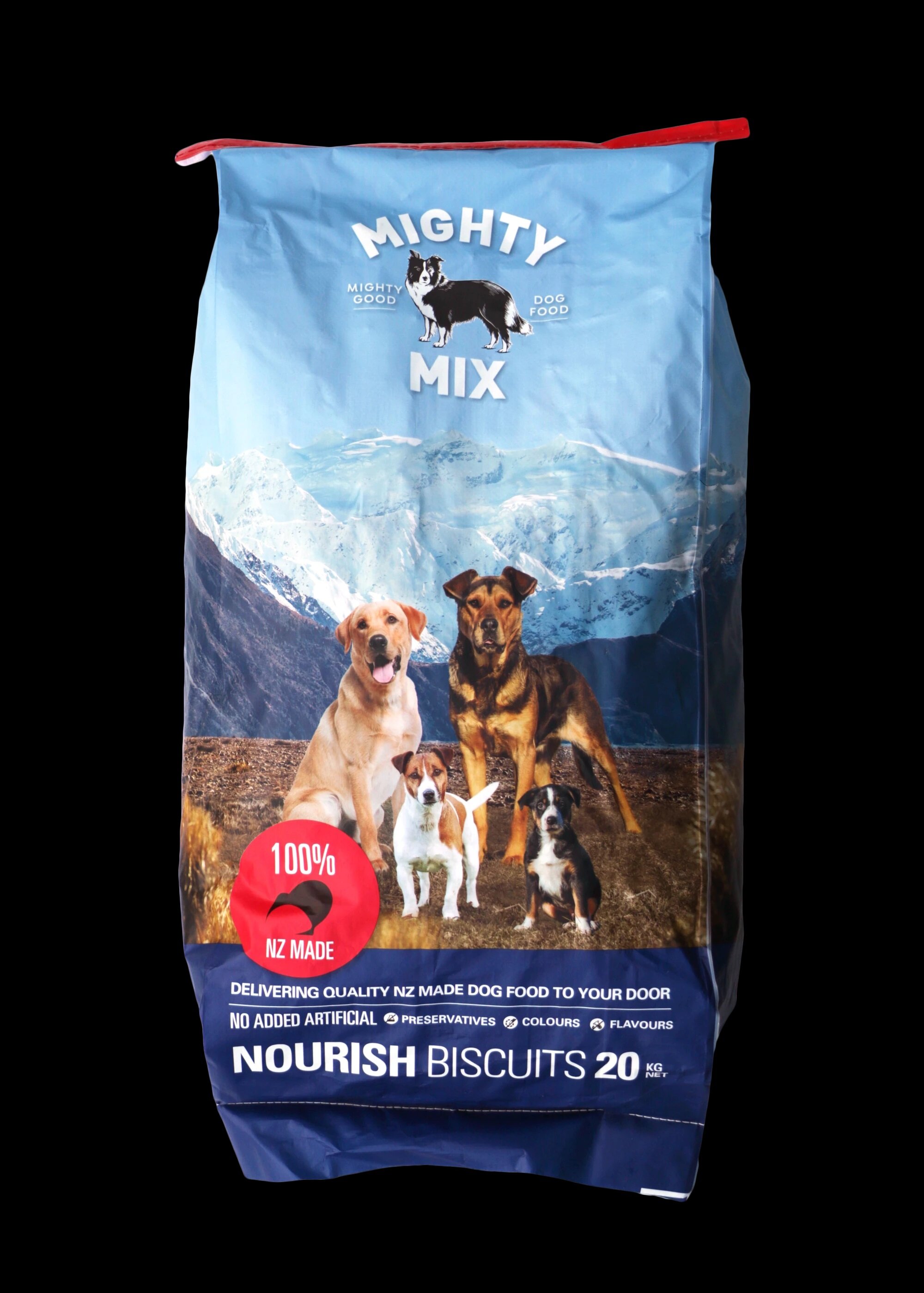 Mighty Mix Nourish Dog Biscuits are to help your dog achieve its ideal weight (whether that’s losing or gaining weight) or give your dog a boost when it needs it.