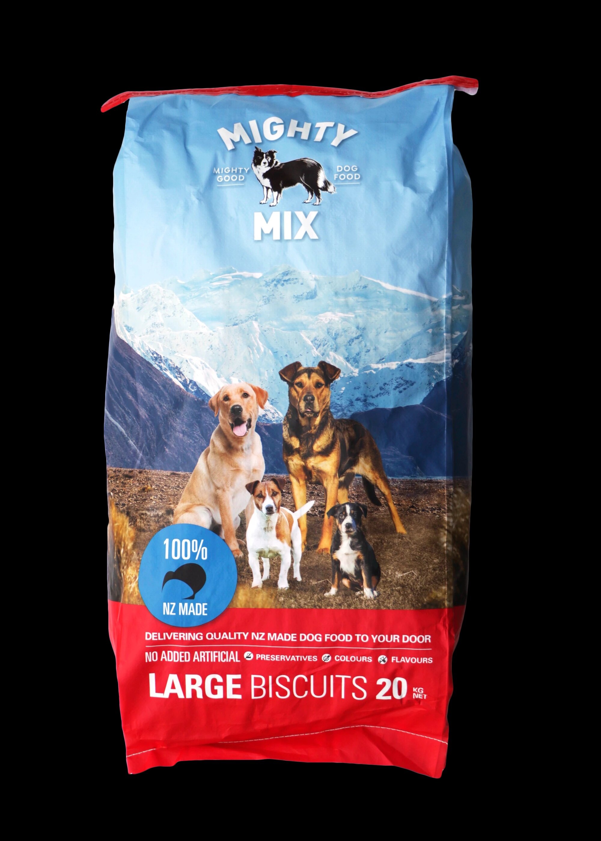 The Mighty Mix Large Biscuit is great for larger breeds, high energy breeds, and working dogs, as they consume large volumes of food and don’t need such a concentrated diet. It’s the original Mighty Mix dog biscuit providing optimum protein, energy and nutrients free from artificial preservatives, colours or flavours. Better yet, the hardened biscuit helps promote healthy teeth and fresher breath.