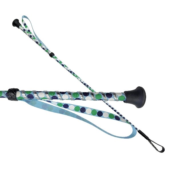 Perfect for general riding, this 65cm riding crop combines practicality with style. Featuring a fun polka dot design, it's both durable and eye-catching. It is ideal for riders who want a reliable crop with vibrant colours.